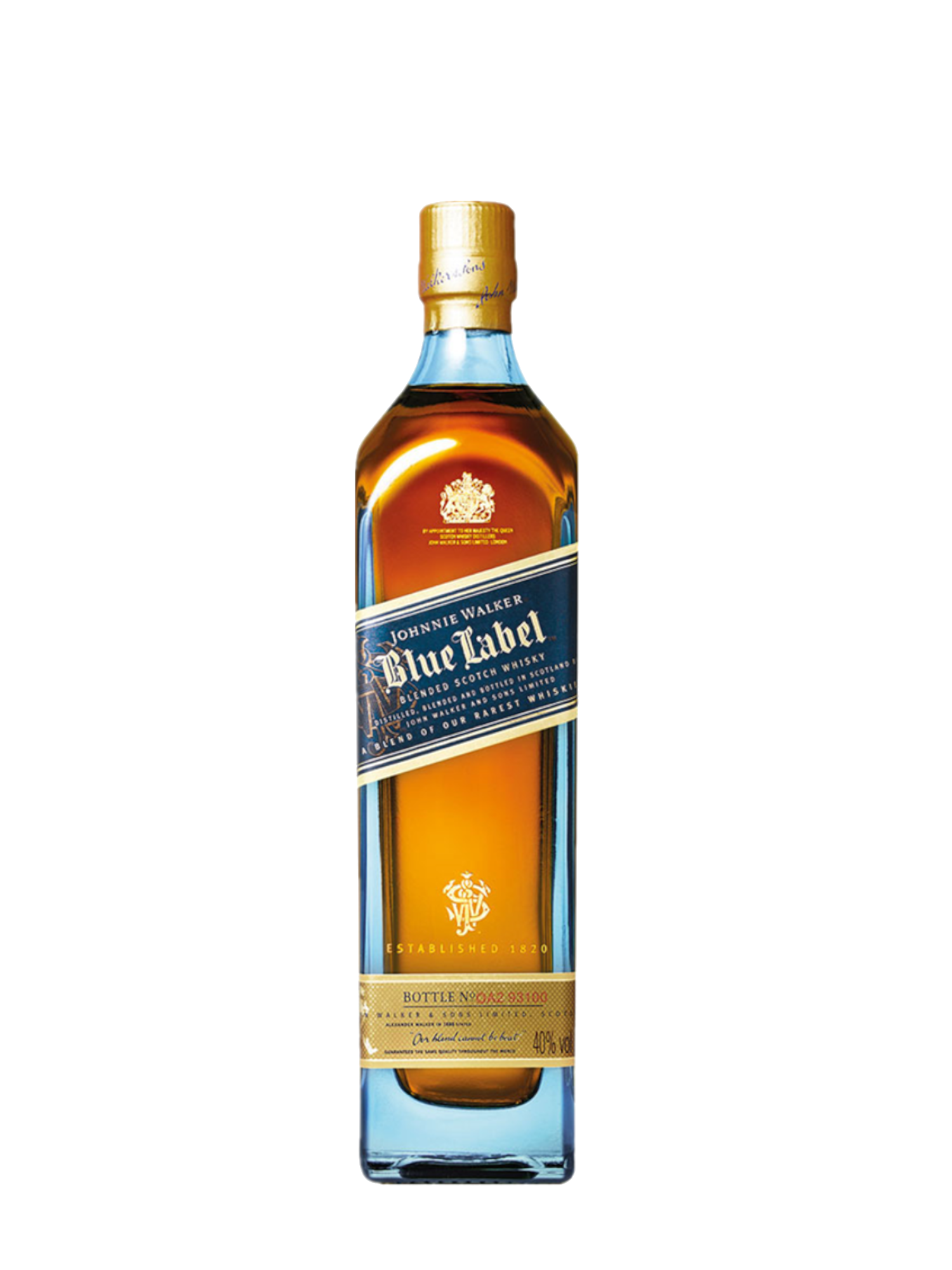 Johnnie Walker Blue Label is an exclusive blended scotch made from some of Scotland’s rarest and most exceptional whiskies. Only one in every 10,000 casks has the elusive quality, character and flavour to deliver the remarkable signature taste of Johnnie Walker Blue Label. Contains rare, mature Malt and Grain Scotch Whiskies that present a multi-layered symphony of flavours, supple and balanced with notes of chocolate, hints of grass and malt. It’s finish of floral, spice, smoke and honey results in a unique and satisfying sipping experience. Best savoured neat with the palate cleansed and cooled by iced water. An extraordinary whisky to receive and a discerning choice of gift when you want to make a special occasion truly exceptional and a memorable.